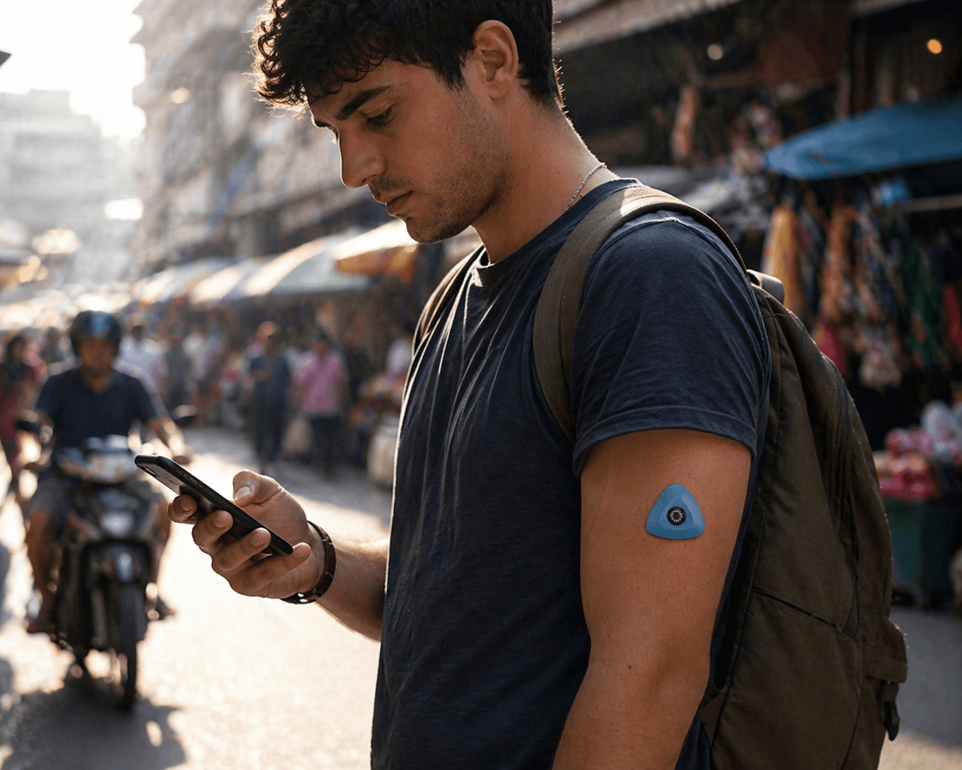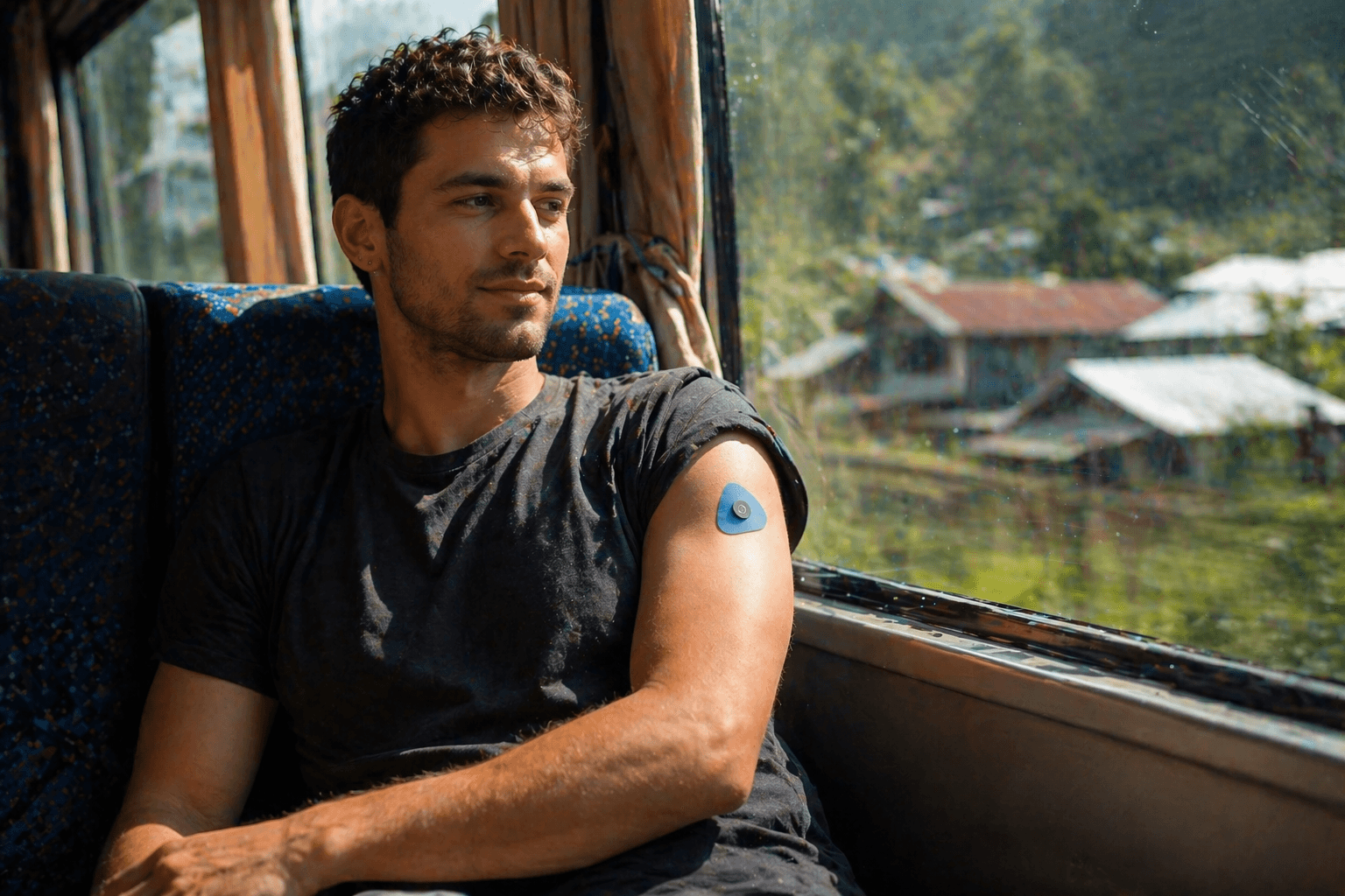 The Clarus patch is a small, wearable device that passively monitors early signs of infection throughout a trip. Designed to feel comfortable and non-intimidating, it collects data in the background so users can stay informed without changing their routine.