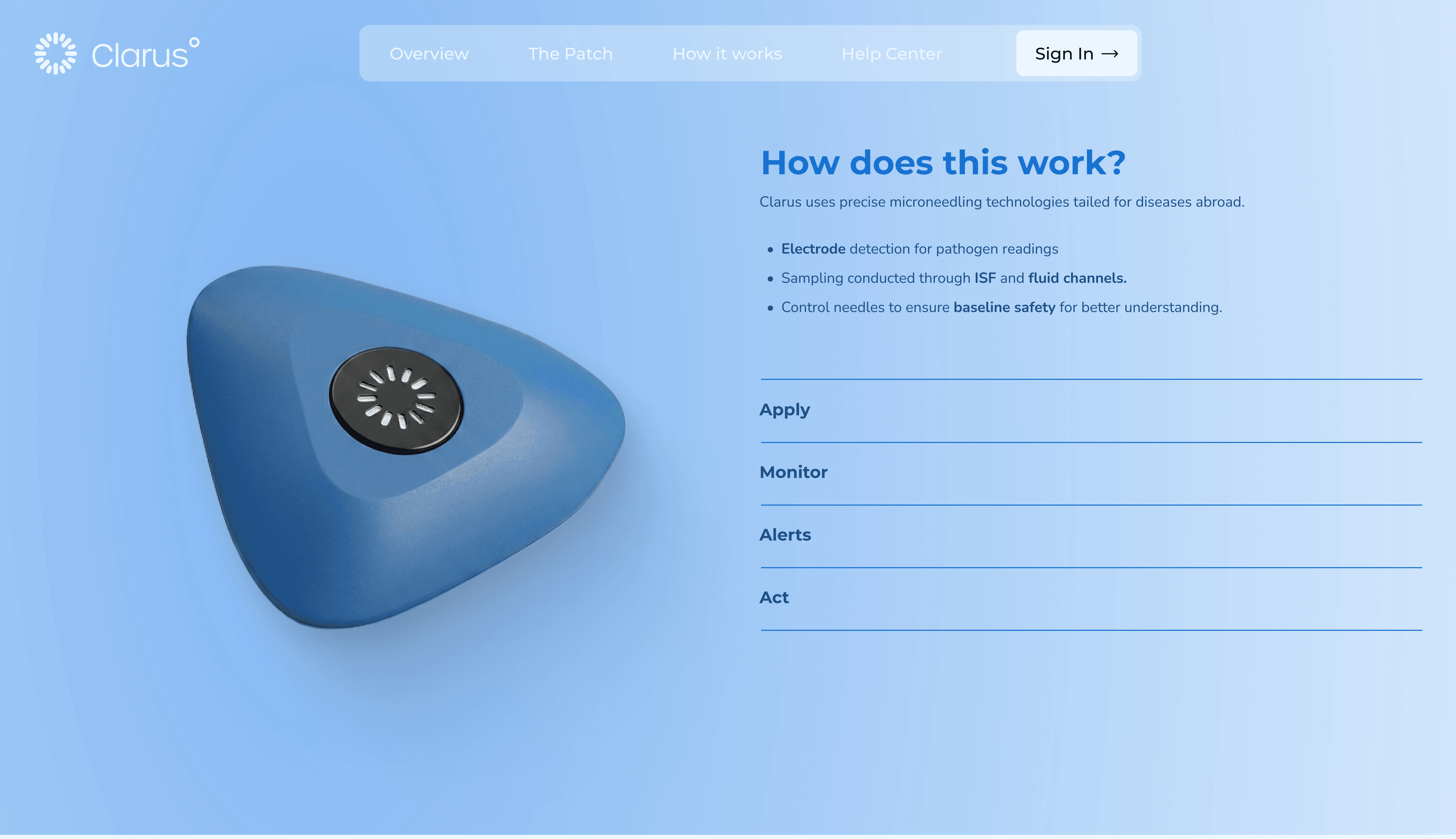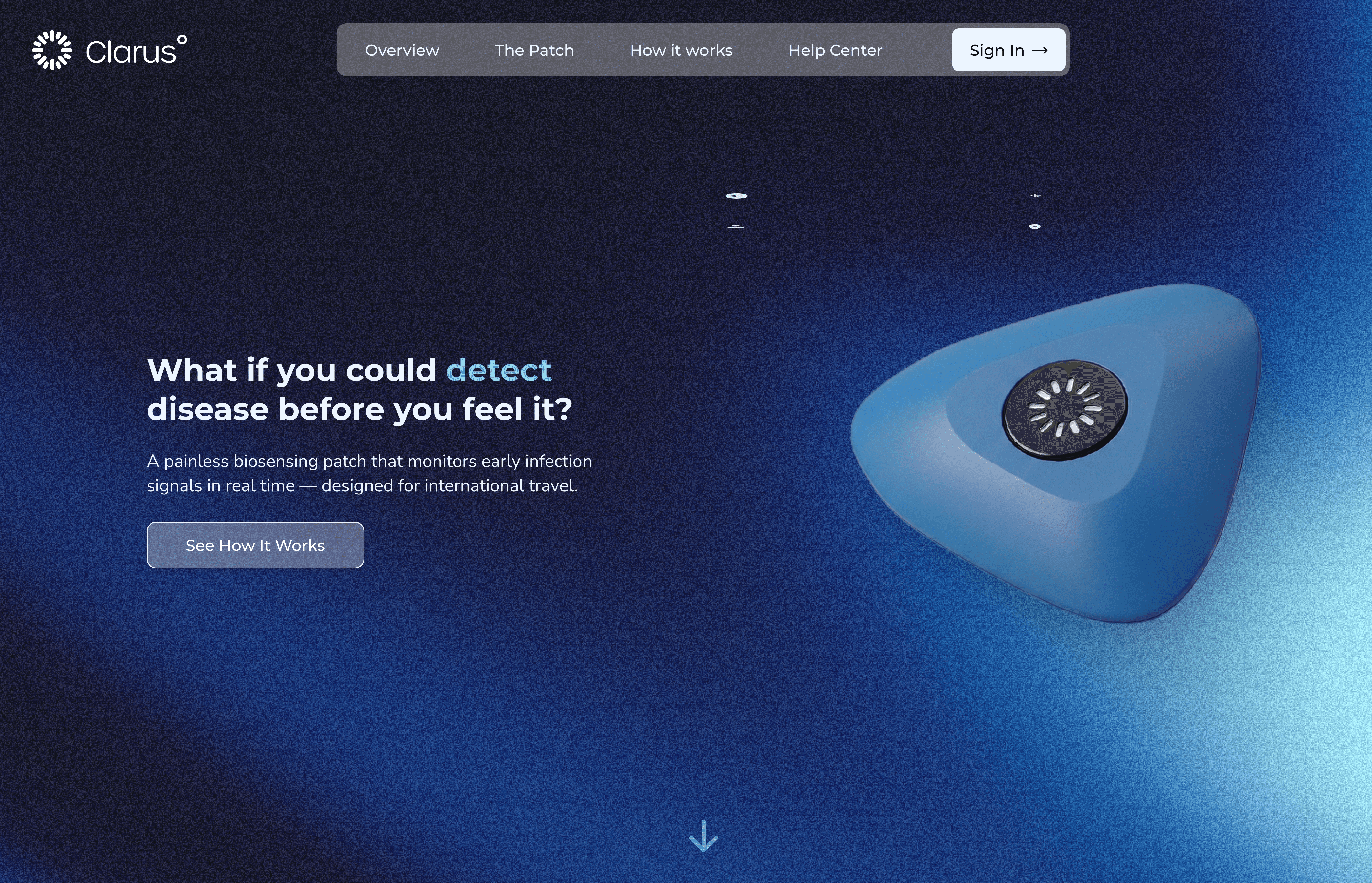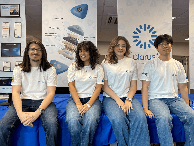 Clarus is a wearable microneedle biosensing system that helps travelers detect early signs of illness in real time. Paired with a mobile app, it delivers clear health insights while contributing anonymized data to support faster global outbreak detection.