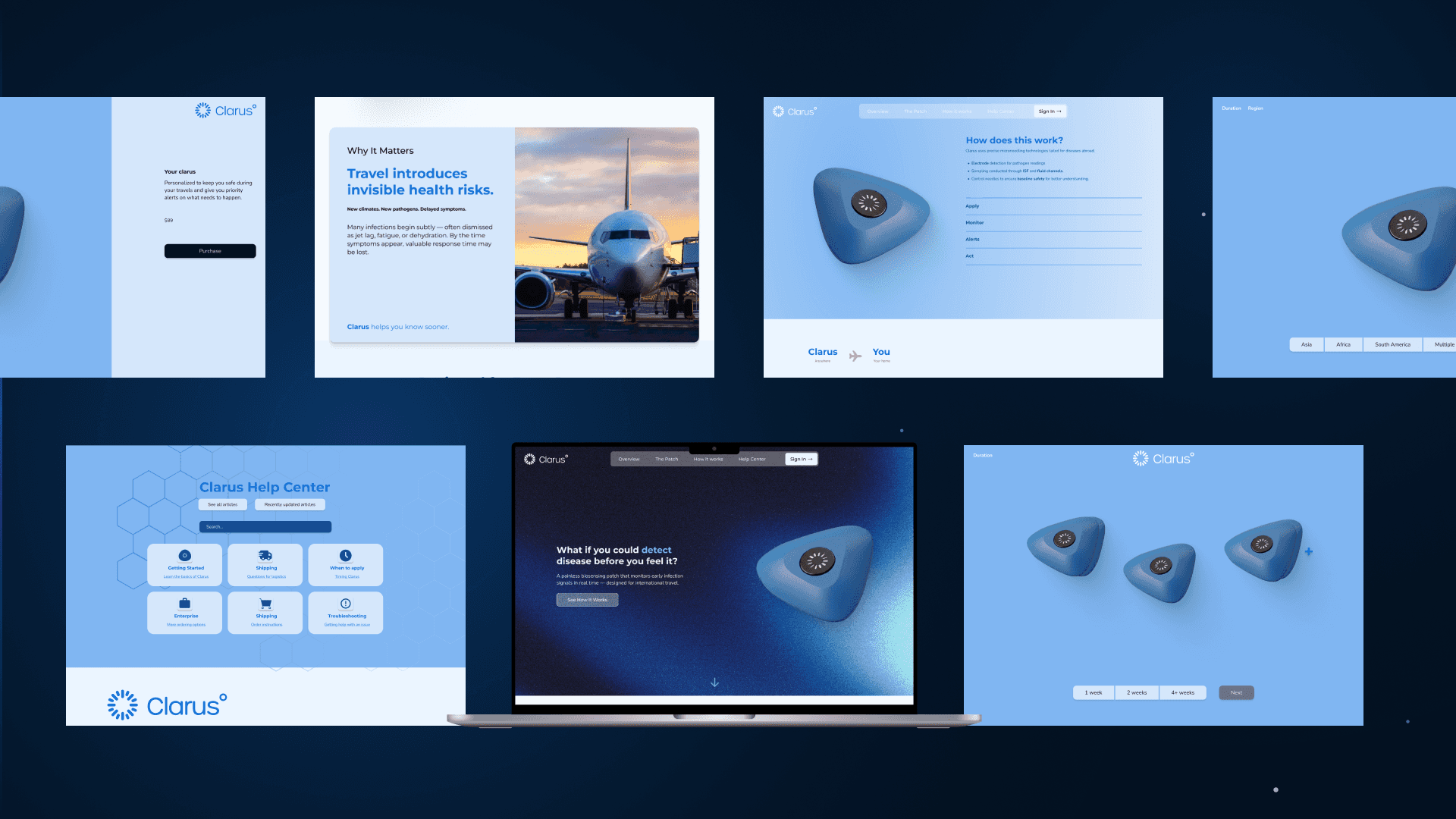 The Clarus website helps travelers understand the product quickly and feel confident using it. It combines simple explanations, visual guidance, and trip-focused information to make health monitoring feel approachable and relevant before the journey even begins.